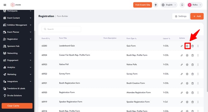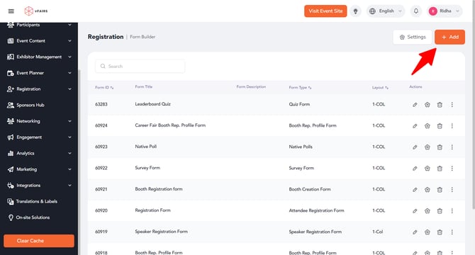 In your vFairs backend, navigate to Registration in the left menu and click Form Builder.