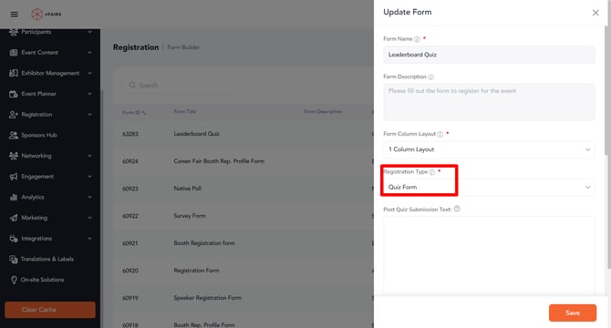 - Select 'Quiz Form' in the registration type field and fill in the rest of the required fields.