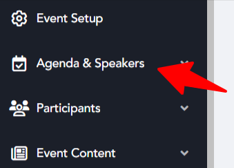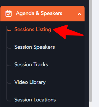 - Locate Sessions: In the left navigation menu, find and click on the "Agenda and Speakers" section.