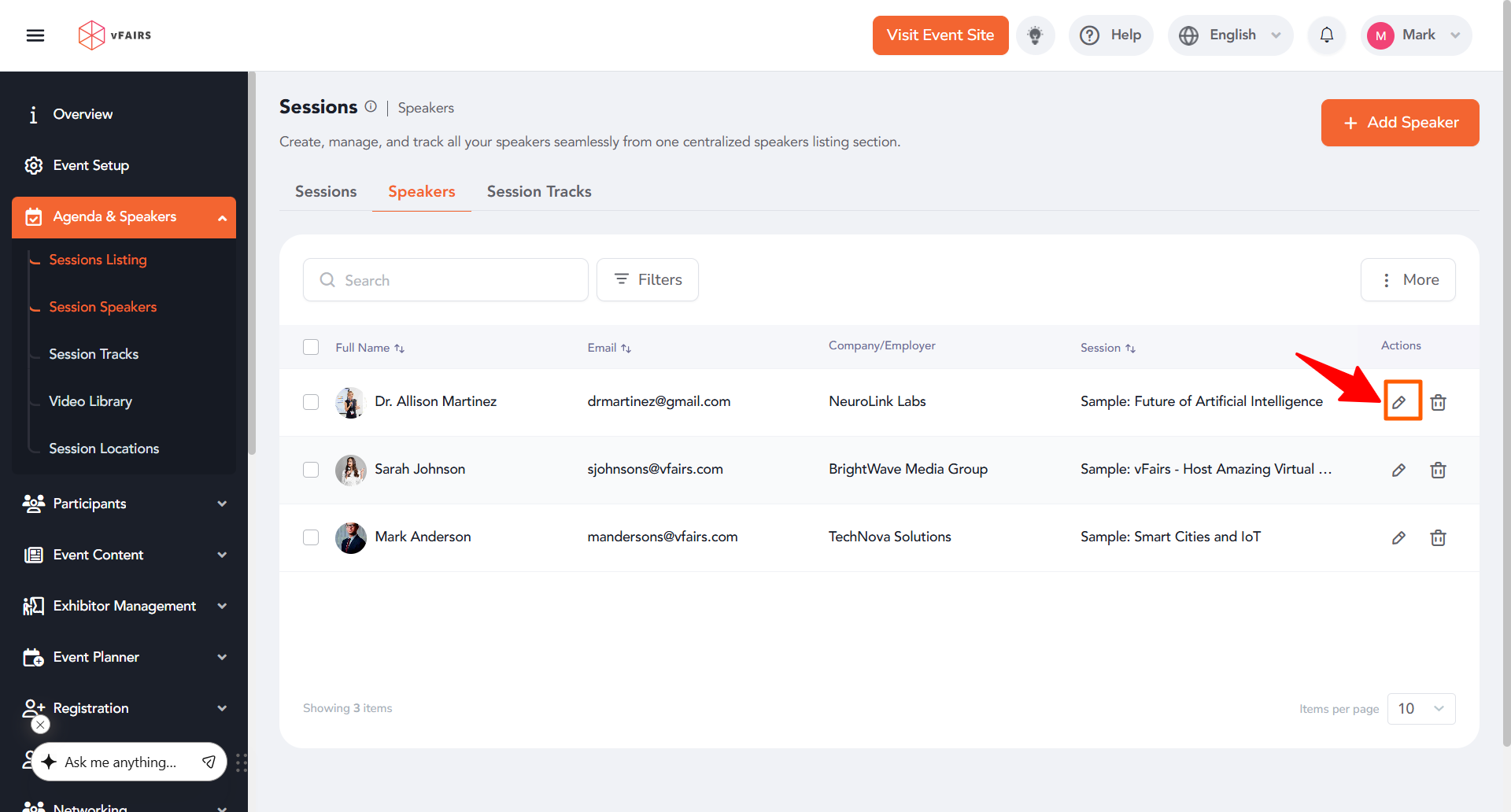 How to Add One Speaker to Multiple Sessions at vFairs