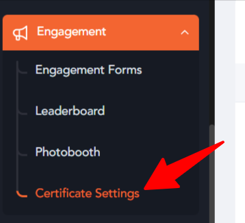 - Head over to the event's backend and access the "Certificate Settings" section upon clicking on the "Engagement" menu.