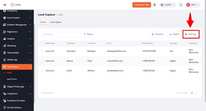 After completing these steps, exhibitors will be able to manage their own lead forms from the backend portal.