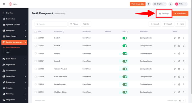 In the Exhibitor Management section, click on Booth Management.