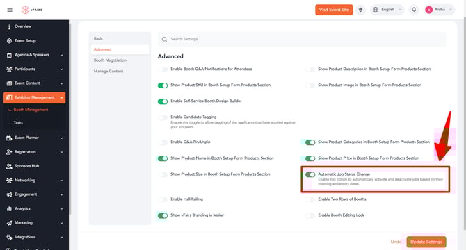 In virtual events, managing job postings effectively is essential. This feature allows event organizers to automatically change the status of job postings upon opening and closing dates.