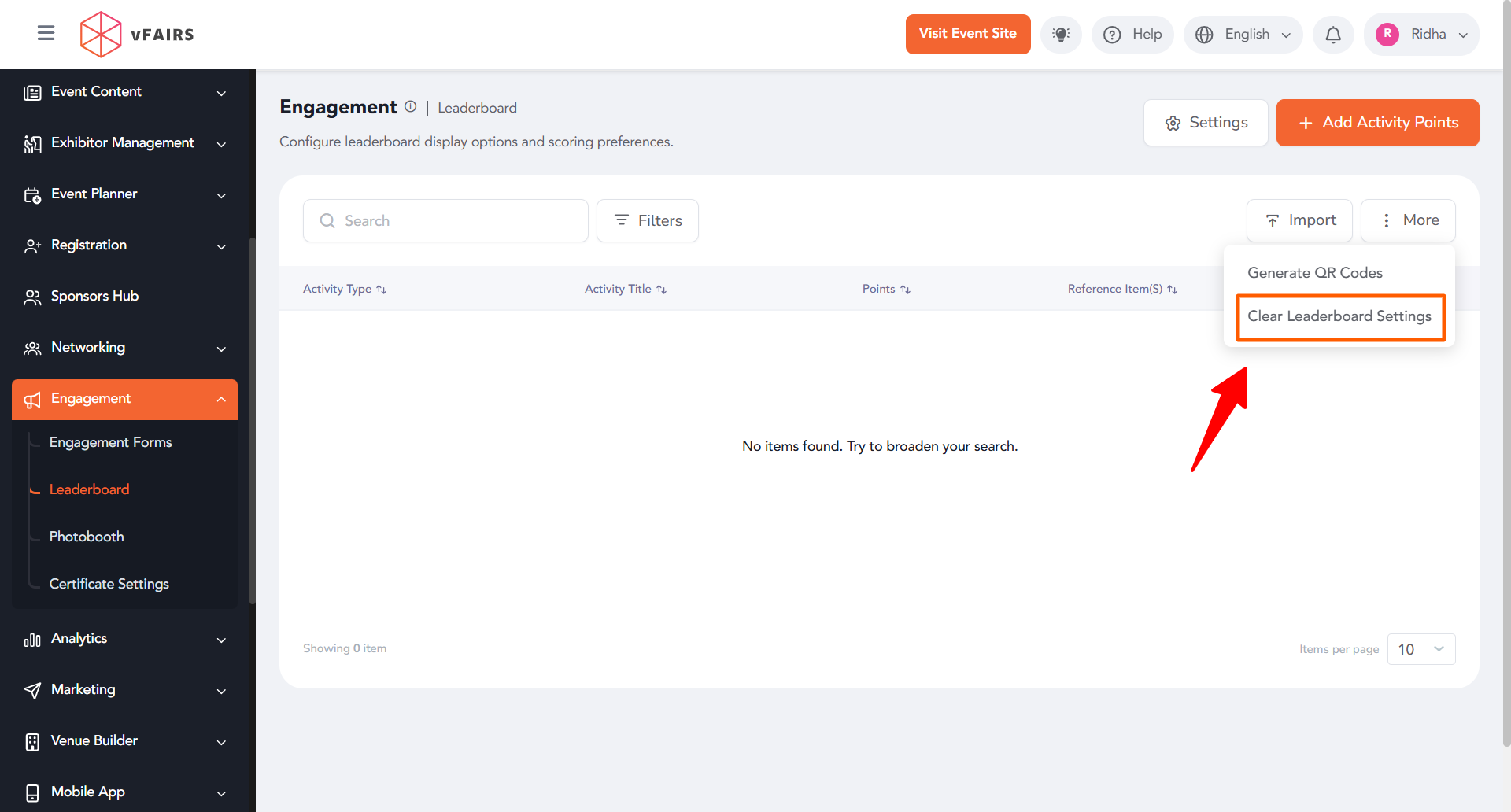 This guide explains how to reset all assigned leaderboard points to zero using the "Clear All Rankings" function. This is especially useful for removing test data before an event goes live.
