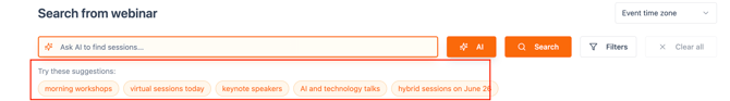 Once enabled, head to the Agenda Listing area within the web event’s internal environment to see the AI-powered search in action.