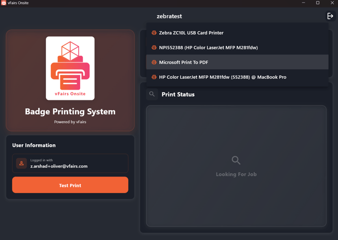 To enable onsite badge printing, you must connect the vFairs On-site mobile app to the vFairs On-site Windows application, which acts as the bridge between the mobile app and the printer. This guide will take you through the full setup and connection process.