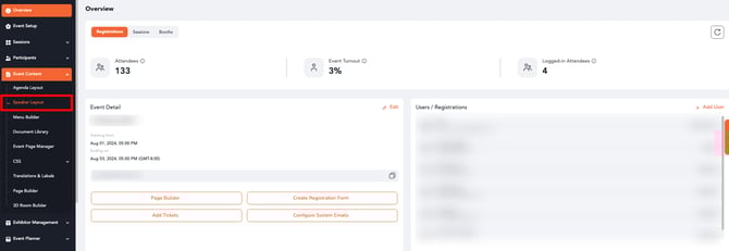 In the backend, click on Event Content, and from the dropdown, select Speaker Layout.