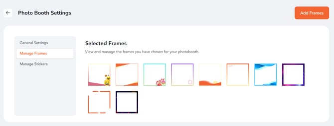 - Manage Frames: Click Manage Frames to view or add frames. Add frames by clicking Add Frames and following the upload instructions.