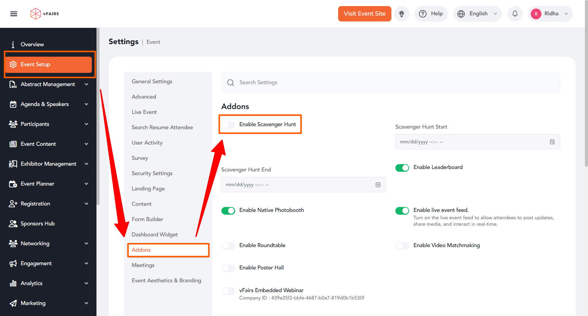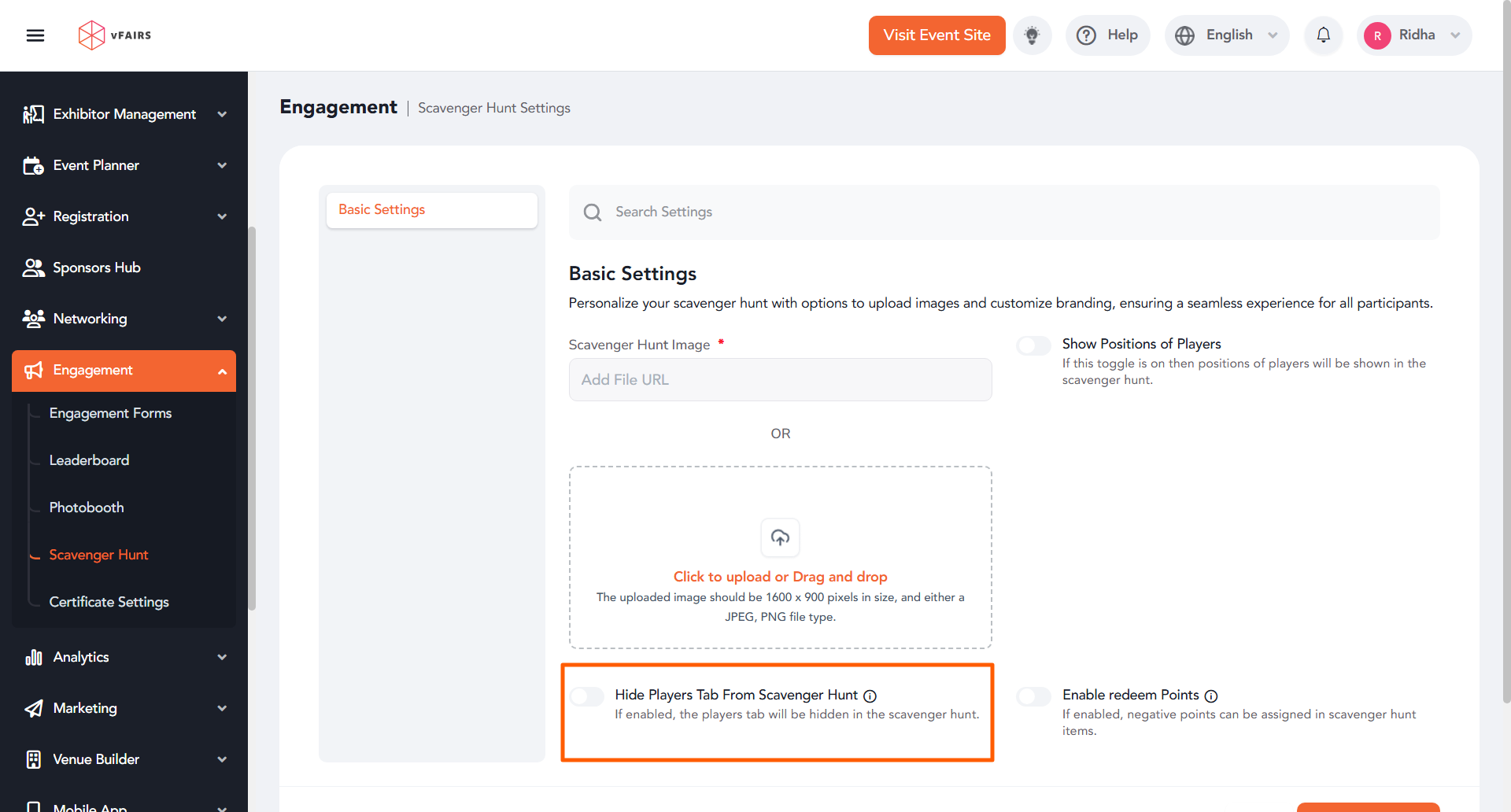 Enabling and Personalizing the Scavenger Hunt feature allows you to align the experience with your event branding and engagement strategy. Follow the steps below to enable and customize your Scavenger Hunt.