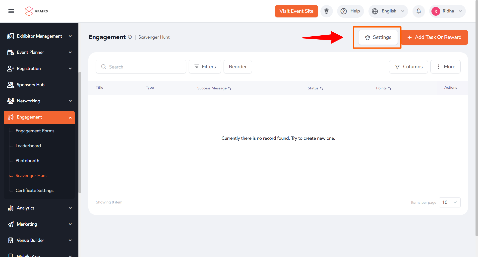 Before personalizing the Scavenger Hunt, ensure the feature is enabled for your event.