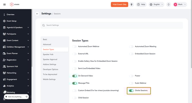 Enabling the onsite sessions option is a straightforward process that enhances your event capabilities. By following these steps, you can easily configure your platform to support onsite sessions and deliver a seamless experience for both attendees and organizers.