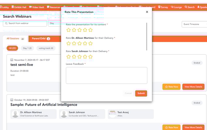 Learn how to enable the rating feature for individual sessions, speakers, and presentations to gain insights into what was successful and identify areas for improvement.