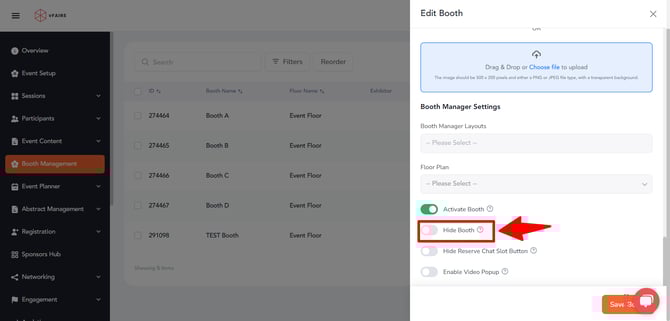 Hiding a booth is a useful feature for organizers who want to temporarily or permanently make a booth invisible to attendees without deleting it. Here's a quick guide: