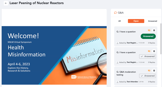 5. Speakers and admins can mark questions as Answered, which automatically moves them to the Answered section for better organization and visibility.