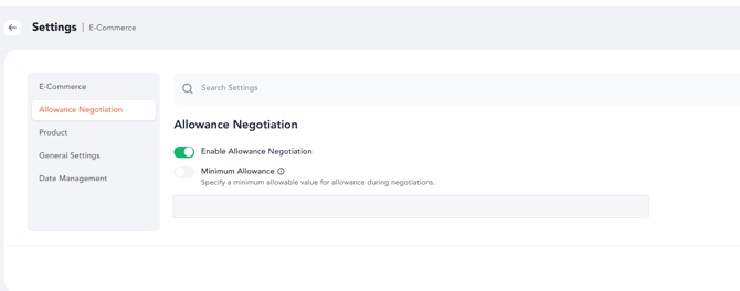 🔹 If the Minimum Allowance toggle is disabled, ensure that an Admin or Event Owner has enabled it in E-commerce Settings.