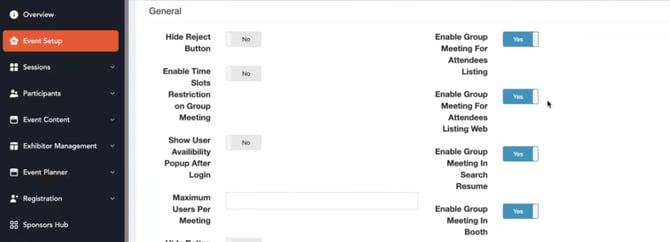 Ensure that group meeting settings are enabled in the backend. This step is necessary to allow attendees to book meetings with you.