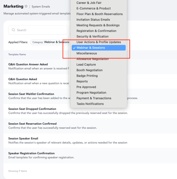 3. Apply the filter "Webinars & Sessions"