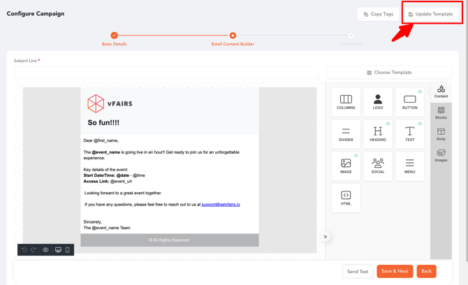 The Templates flow now supports multiple custom templates per campaign, making it easier to experiment, reuse, and manage designs flexibly while keeping consistency across your event’s communications.