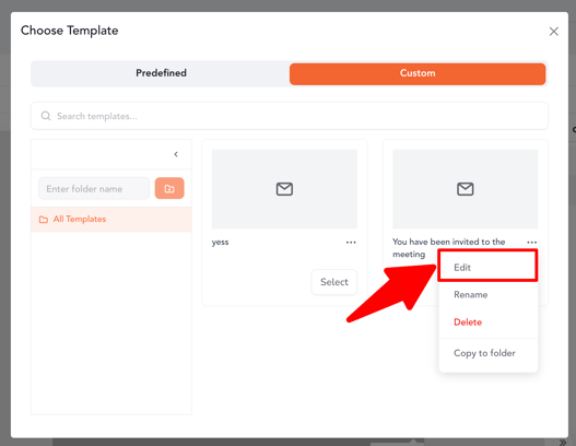 You can now edit existing custom templates directly inside the Email Builder — without creating duplicates.