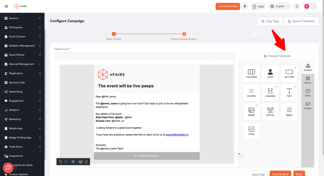 When creating or editing a campaign, click Choose Template.