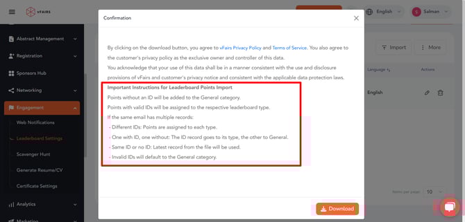 - Keep note of the important instructions to import leaderboard points.