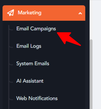 - Head over to the "Email Campaigns" section in the backend present under Marketing Module.